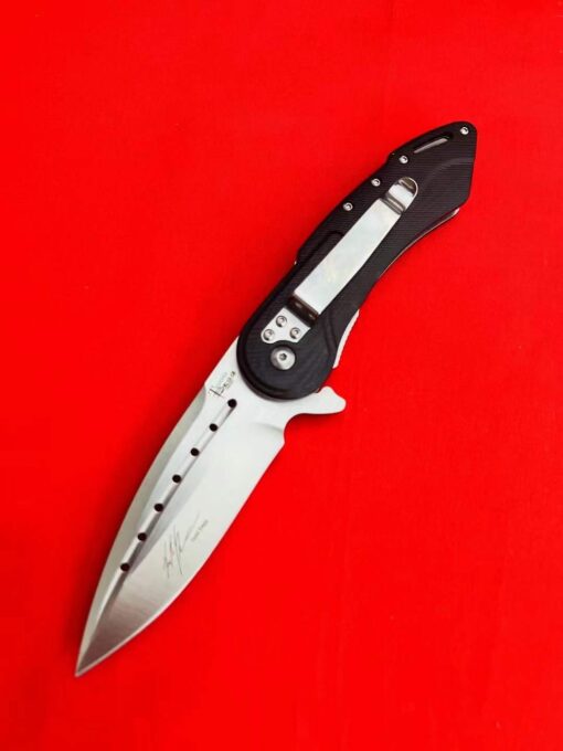 The full length; 23.0cm blade length: 9.5cm Handle length: 13cm Blade thickness: 0.3cm blade width: 3.8cm Blade material: 9CR18MOV Handle material: steel sheet + non-slip G10 pieces. Hardness: 58HRC net weight; 220g (including packaging) Surface treatment: wire drawing lock; Wire lock