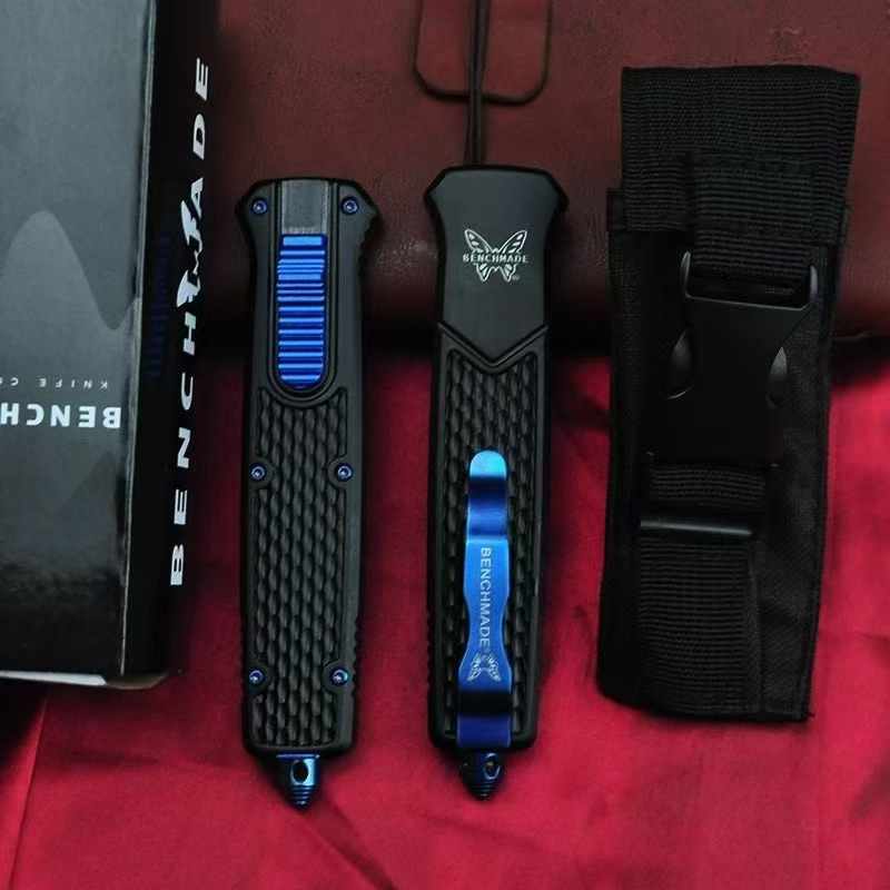 The latest BENCHMADE Butterfly 838 OTF Straight Jump knife for SEAL Special Attack Team (two blade options, Damascus Steel, D2 steel) Damascus Steel is a drop tip blade, D2 steel is a stone wash double blade and black double blade, CNC engraving handle, computer gong, very high precision, A very good knife to collect